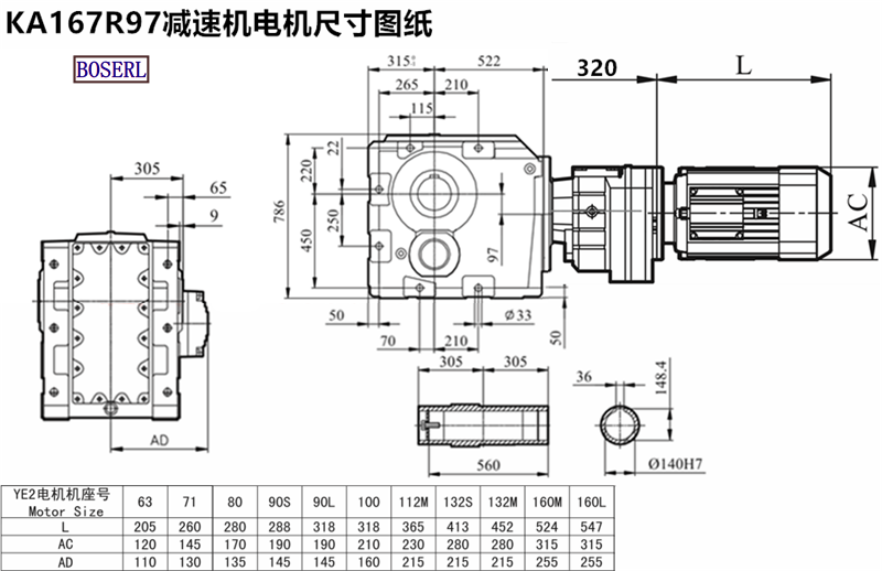 | 空心軸減速機 | KA167R97P160M4 | KA167R97DM100L4 | KA167R97DVE132S4 |